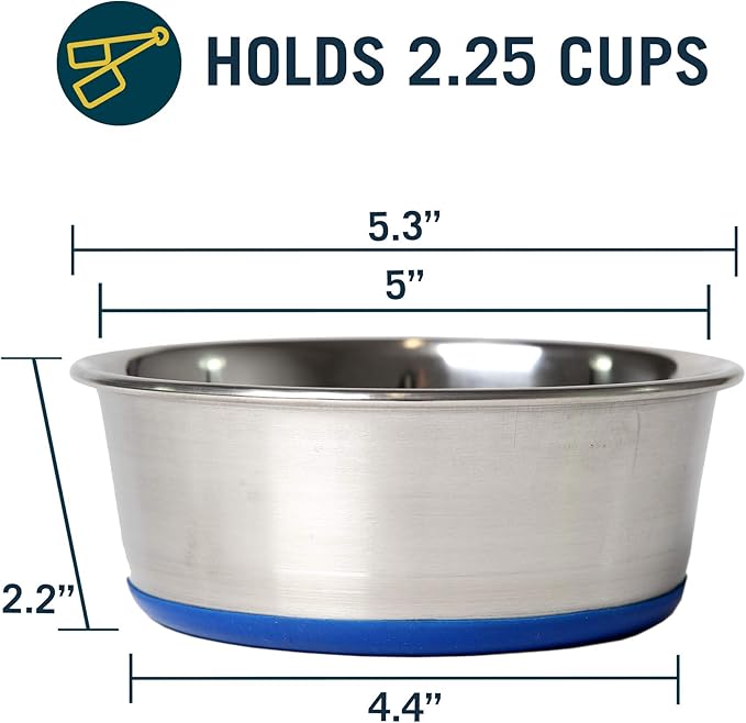 OurPet's DuraPet Premium Dishwasher Safe Stainless Steel Dog Bowl for Food or Water [Multiple Sizes for Small to Large Dogs] in Traditional or Wide Base Design - 2.25 Cup