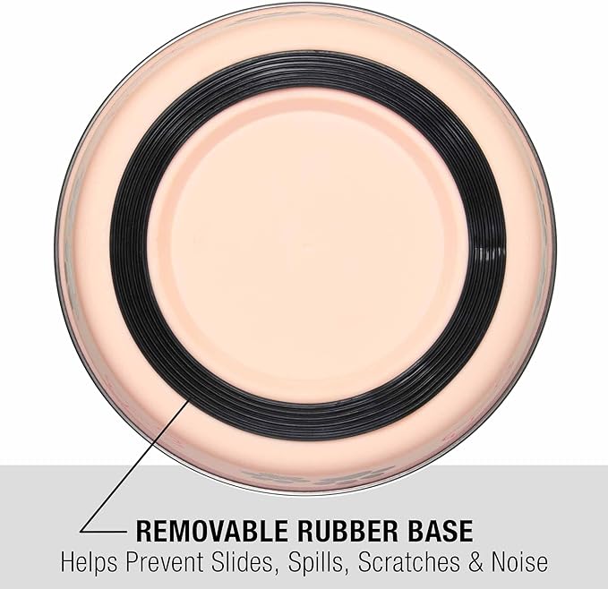 - REMOVEABLE RUBBER BASE - This feature prevents and ensures no spill water bowl for dogs. It’s perfect for puppy food and makes an excellent addition to your dog feeding station. Watch the bowl stand steady on your pet food mat, making it a great complement to your dog mat and other dog stuff.