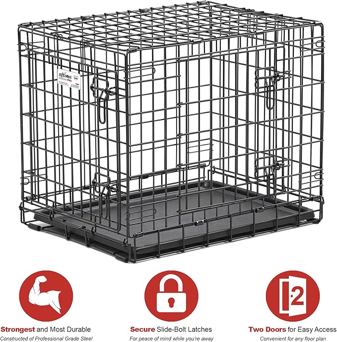 MidWest Homes for Pets Ultima Pro Series 24' Dog Crate | Extra-Strong Double Door Folding Metal Dog Crate w/Divider Panel, Floor Protecting 'Roller Feet' & Leak-Proof Plastic Pan