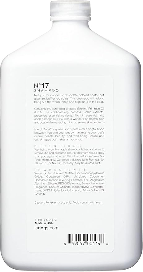 Isle of Dogs Coature No. 17 Copper Coat Evening Primrose Oil Dog Shampoo for Brown Dogs, 1 Liter