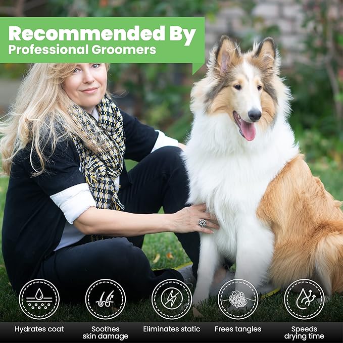 - Sweet Pea Essence: Infused with proprietary and luxurious sweet pea botanical essence, rosemary, and citric acid, our pet grooming conditioner cleanses and nourishes your pet's coat while leaving an aromatic fragrance behind.