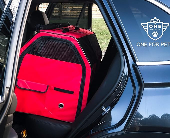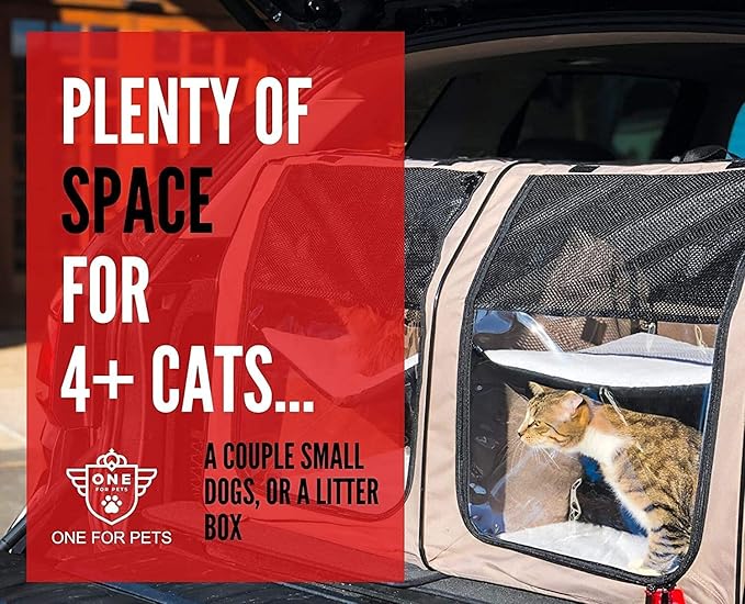 - Cat Travel Carrier: Spacious interior space; Build-in straps allow safe connection to the seatbelt