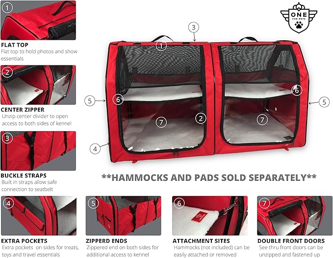 - Double Portable Hammock: Use the double kennel as two separate compartments or one big space by unzipping the interior central divider