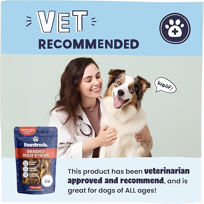 Pawstruck Natural 9” Braided Bully Sticks for Dogs - Tough Long Lasting, Rawhide Free, Low Odor, Healthy Single Ingredient Chew Treat for Aggressive Chewers - 10 Count - Packaging May Vary