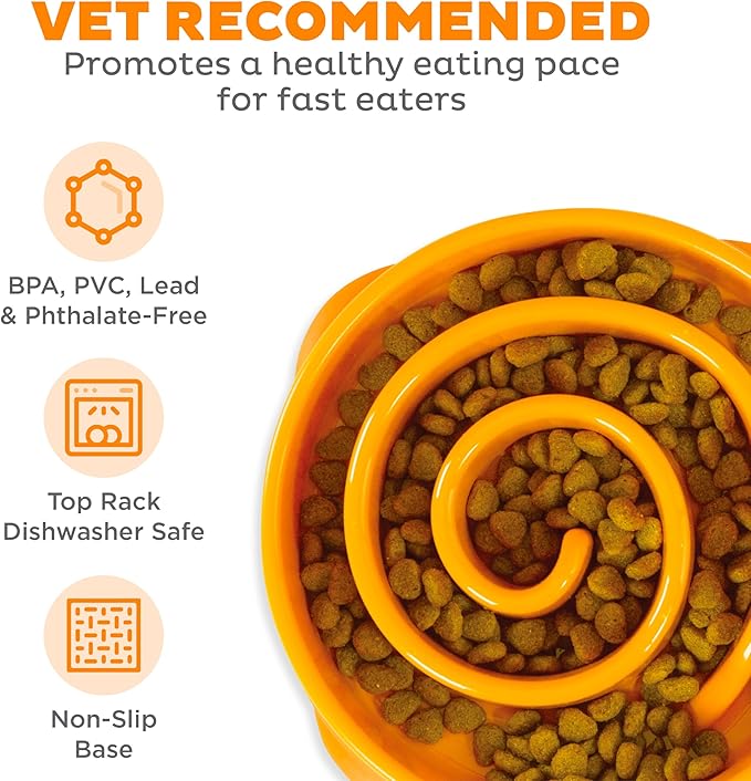 Outward Hound Fun Feeder Slow Bowl in Orange Plastic for Dogs