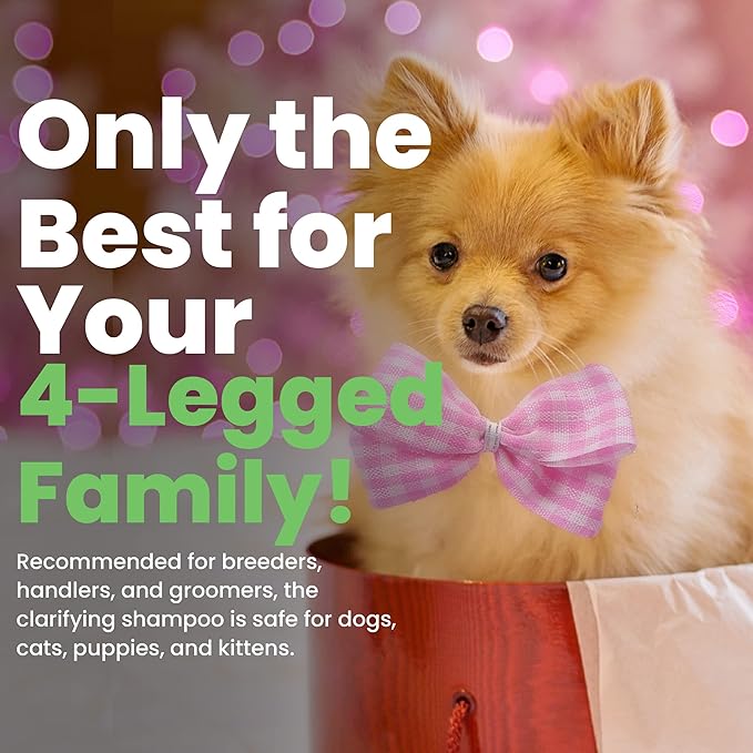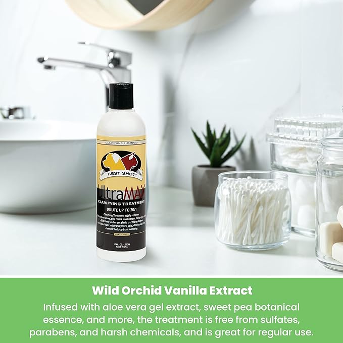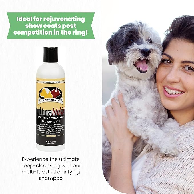 - Clarifying Shampoo: Use Best Shot’s multi-faceted UltraMAX Pro Clarifying Treatment for general cleansing, deep cleansing, coarse coats, and even degreasing your pet's coat. It is perfect for restoring show coats after competing in the ring