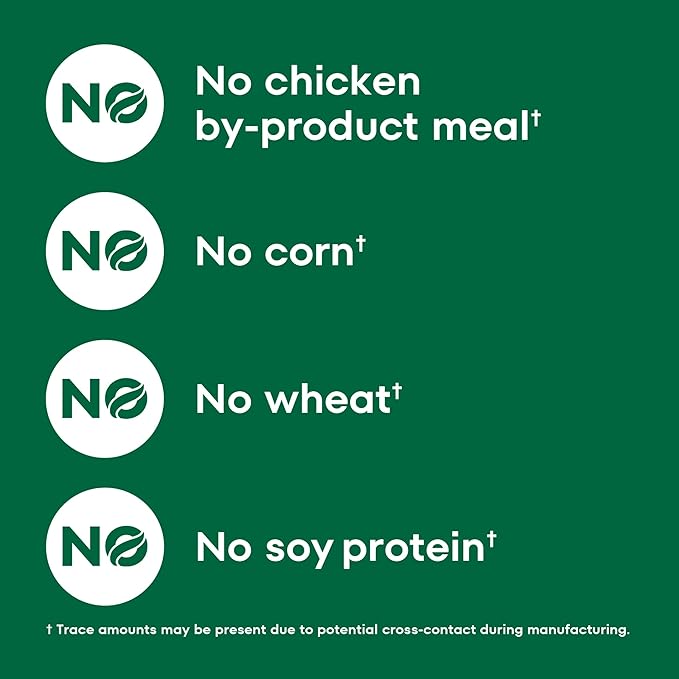 • Quality Recipe: This dry dog food is crafted with no chicken by-product meal, no artificial flavors or colors, no artificial preservatives, no corn, wheat, or soy protein, although trace amounts may be present due to potential cross-contact during manufacturing.