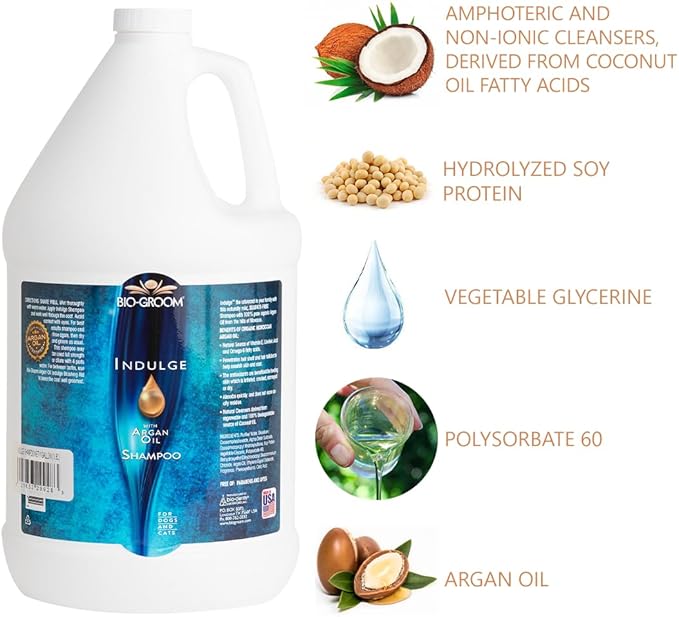 Bio-Groom Indulge Argan Oil Dog Shampoo – Deshedding Dog Bathing Supplies, Puppy Wash, Cat & Dog Grooming Supplies for Sensitive Skin, Cruelty-Free, Made in USA, Dog Products – 1 Gallon
