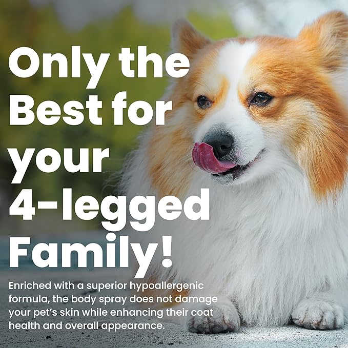 - Silk Protein-Enriched: Formulated with silk protein and vitamins A, D, and E, this body spray also works as a cat and dog cologne. Our Scentament Spa is available in an 8-ounce bottle and is safe for dogs, cats, puppies, and kittens (over 12 weeks old).