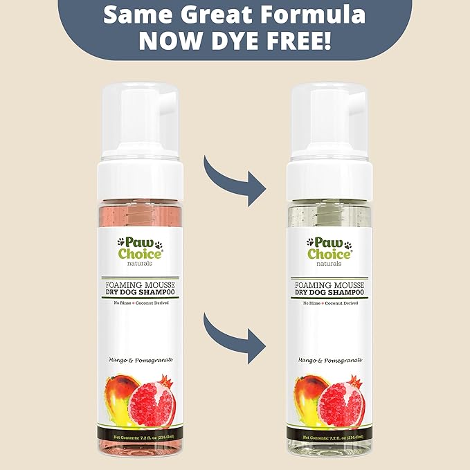 Paw Choice Dry Shampoo for Dogs - Waterless No-Rinse Foam for Odor Removal, Cleaning, Conditioning - Hypoallergenic, Natural - Safe for Sensitive Skin - Made in USA - Mango Pomegranate Scent