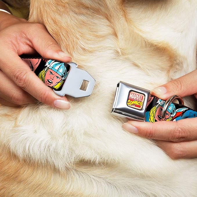 - Buckle-Down Seatbelt Buckle Dog Collar - 5-Marvel Characters Black - 1" Wide - Fits 11-17" Neck - Medium