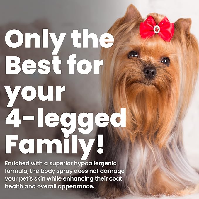 • Silk Protein-Enriched: Formulated with silk protein and botanical extracts, this body spray also works as a cat and dog cologne. Our Scentament Spa is available in an 8-ounce bottle and is safe for dogs, cats, puppies, and kittens (over 12 weeks old).
