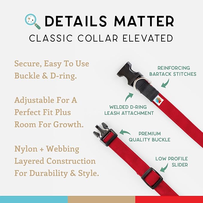 Dog Collar, Lightweight, Heavy Duty Dog Collar with Buckle, Fabric Pet Collar, Breathable & Adjustable Puppy Collar, Dog Collar for Large Dogs (Red, Large - 14-24 Inch) - Wildebeest