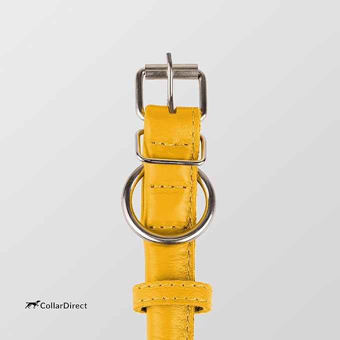 CollarDirect Rolled Leather Dog Collar, Soft Padded Round Puppy Collar, Handmade Genuine Leather Collar Dog Small Large Cat Collars 13 Colors (6-7 Inch, Yellow Textured)