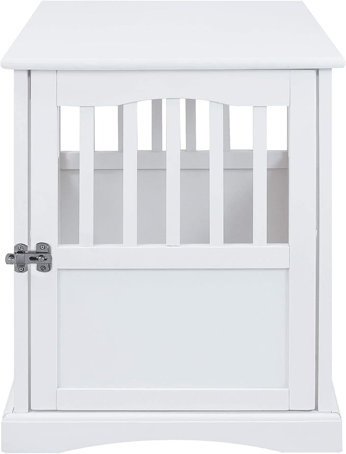 Casual Home Wooden Decorative Indoor Kennel Dog Crate End Table Night Stand Furniture with Lockable Gate for Medium Pets Up to 25 Pounds, White