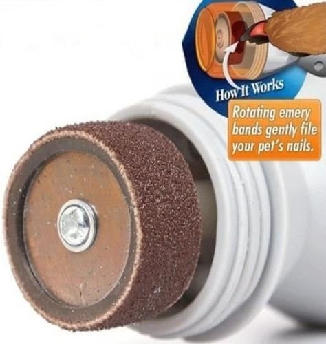 - Package includes: 1xpet nail trimmer ; 3xreplacement emery board bands; 1xUser Manual. How it works: Rotating emery bands gently file your pet's nails. Wonderful design!