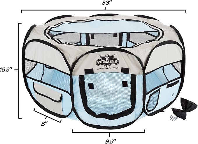 Pet Playpen - 33x15 Pop-Up Dog Kennel with Carry Bag - Portable Play Pen for Dogs, Cats, Rabbits, and Small Animals up to 25lbs by PETMAKER (Blue)