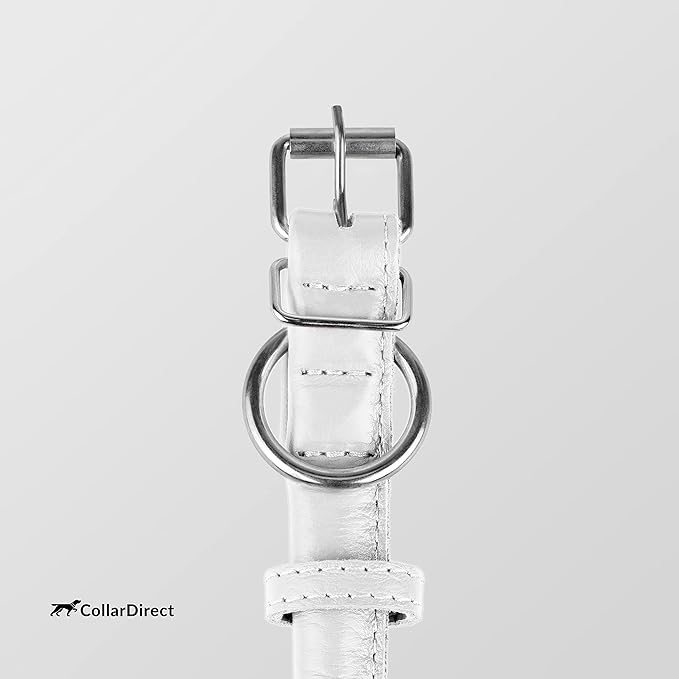 CollarDirect Rolled Leather Dog Collar, Soft Padded Round Puppy Collar, Handmade Genuine Leather Collar Dog Small Large Cat Collars 13 Colors (8-11 Inch, White Textured)