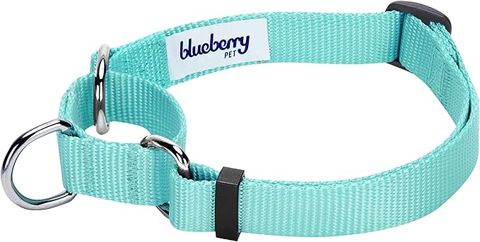 Blueberry Pet Essentials Martingale Safety Training Dog Collar, Mint Blue, Medium, Heavy Duty Nylon Adjustable Collars for Dogs