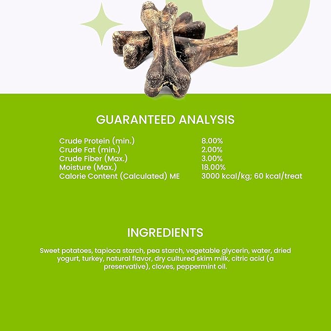 - Improves Smoochy Fresh Breath - How to avoid a heavy, hot-breathing, stanky dog? Turkey dental chews garnished in cloves and peppermint oil.