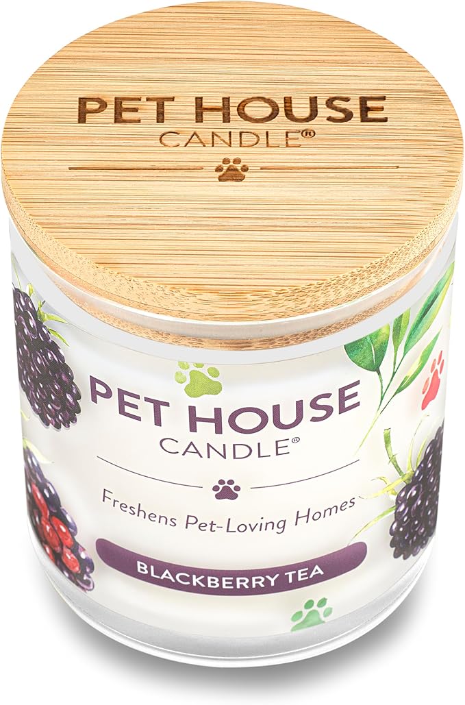 Pet House 9 oz BlackBerry Tea Scented Candle, Clean Burning, Long Lasting Plant Based Soy Candle for Pet Odor, Spring, Summer Scented 60 Hour Burn Time