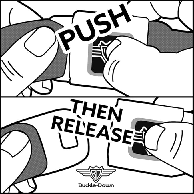 - The buckle is a miniature authentic SeatBelt Buckle, so you press the center button to release the clasp