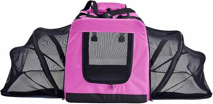 - This Soft Folding Pet Crate features Four sides of Ventilated Mesh with Two Entrances consisting of an Above-Top Mesh Zippered Rooftop and a Zippered Entrance located at the front for convenient pet placement. The Exterior Exterior Shell is composed of Scratch-Resistant Nylon for added Durability