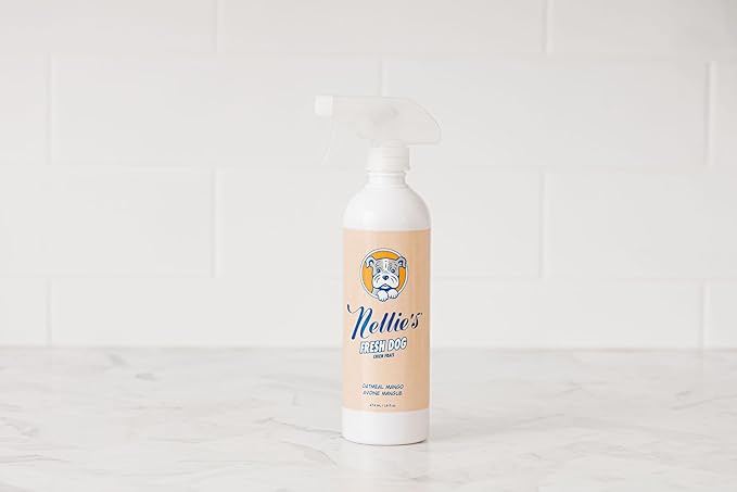 Nellie's Fresh Dog - Waterless Dog Shampoo - Oatmeal Mango Fragrance, Enzyme Blend, Plant-Based, and Non-Toxic - Ideal for All Dog Breeds, Long-Haired or Short - Eco-Friendly Grooming (16 fl oz)