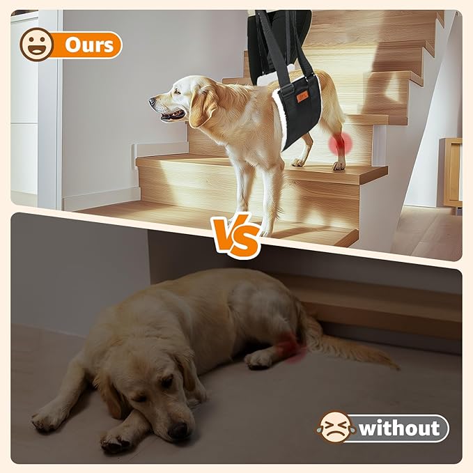 - Lifesaver: The dog carrying harness can pick up the rear end of your fur friend,prevent hip pain and injury caused by aging, support them getting in and out of the car,up and down the steps,help them get up from lying down,stabilize both the gait and spine