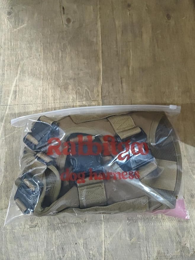 rabbitgoo Tactical Dog Harness for Large Dogs, Heavy Duty Dog Harness with Handle, No-Pull Service Dog Vest Large Breed, Adjustable Military Dog Vest Harness for Training Hunting Walking, Brown, L