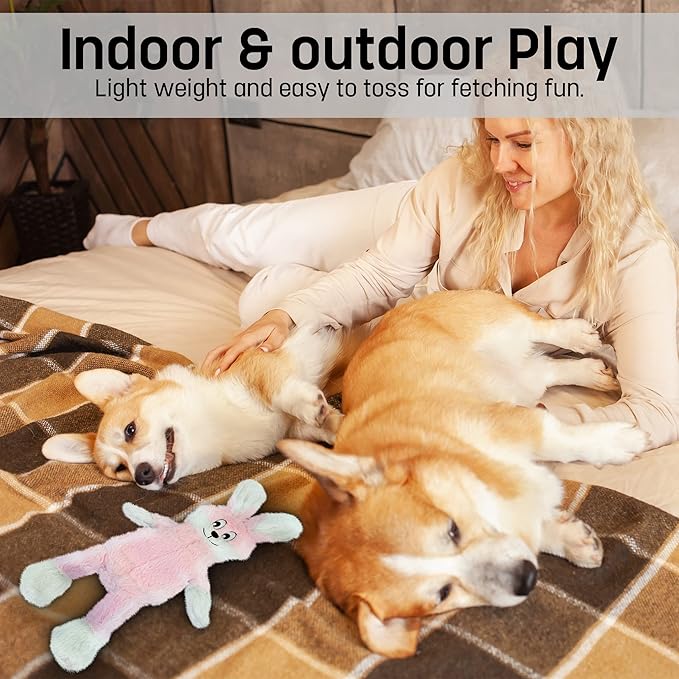 FGA MARKETPLACE Pink Rabbit Dog Toy Flat NO Stuffing NO Squeak, Funny Style Will Entertain Your Dog for Hours, Recommended for Small and Medium Dog 21 INCH Long