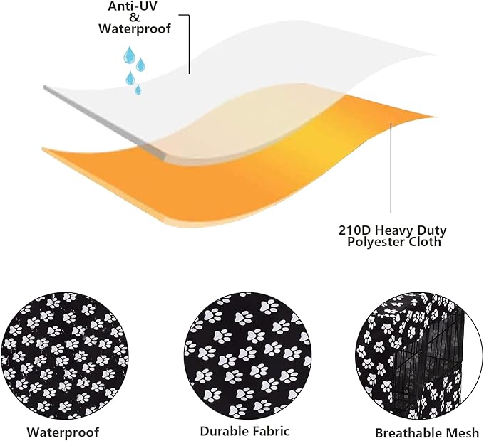 Dog Crate Cover Kennel Dogs Covers fits Small Medium Large crates cage Heavy Nylon Waterproof soundproof Indoor Outdoor - Cover only - Black paw - 42 inch