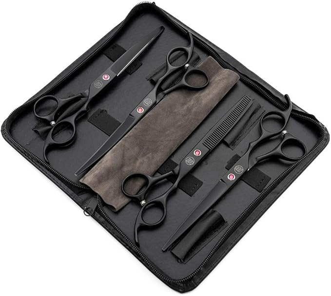 Moontay Professional 7.0" Dog Grooming Scissors Set, 4-pieces Straight, Upward Curved, Downward Curved, Thinning/Blending Shears for Dog, Cat and Pets, JP Stainless Steel, Black