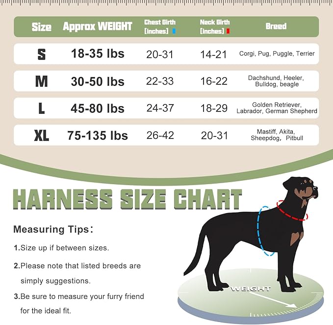 - 【Guaranteed Satisfaction 】 Be sure to check our sizing chart for the perfect fit. Against any quality issues or questions about our dog vest harness, don't hesitate to reach out to us. We are here to assist you and ensure your complete satisfaction.