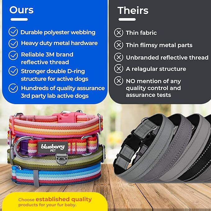 Blueberry Pet 3M Reflective Dog Collars | Adjustable Dog Collar w/Multi-Colored Stripe - Azure Blue and Raspberry Red | Nylon Pet Collars for Dogs & Refflective Dog Collar for X-Large Dogs
