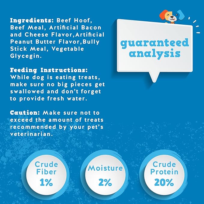 - What's Inside? - Jack & Pup Filled cow hooves for dogs includes a variety of 3 (artificially flavored) peanut butter, bacon & cheese, and bully stick, deliciously filled cow hoofs for dogs. These dog chews are the perfect alternative to marrow bones for dogs.