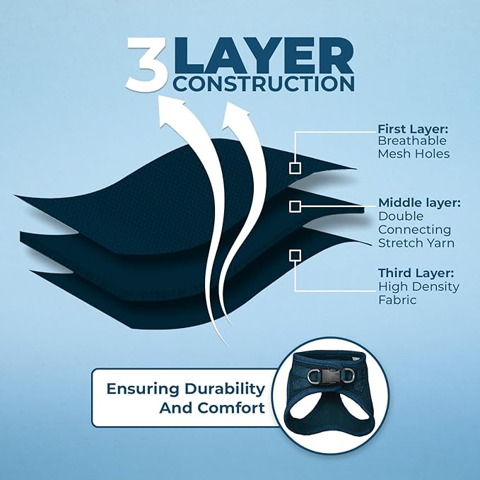 - Triple Security: Our harness provides three layers of protection with a secure hook and loop fastener, a sturdy buckle, and double D-rings, ensuring your pet's safety at all times