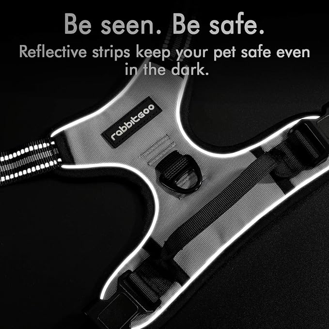 rabbitgoo Dog Harness, No-Pull Pet Harness with 2 Leash Clips, Adjustable Soft Padded Dog Vest, Reflective No-Choke Pet Oxford Vest with Easy Control Handle for Medium Dogs, Grey, M
