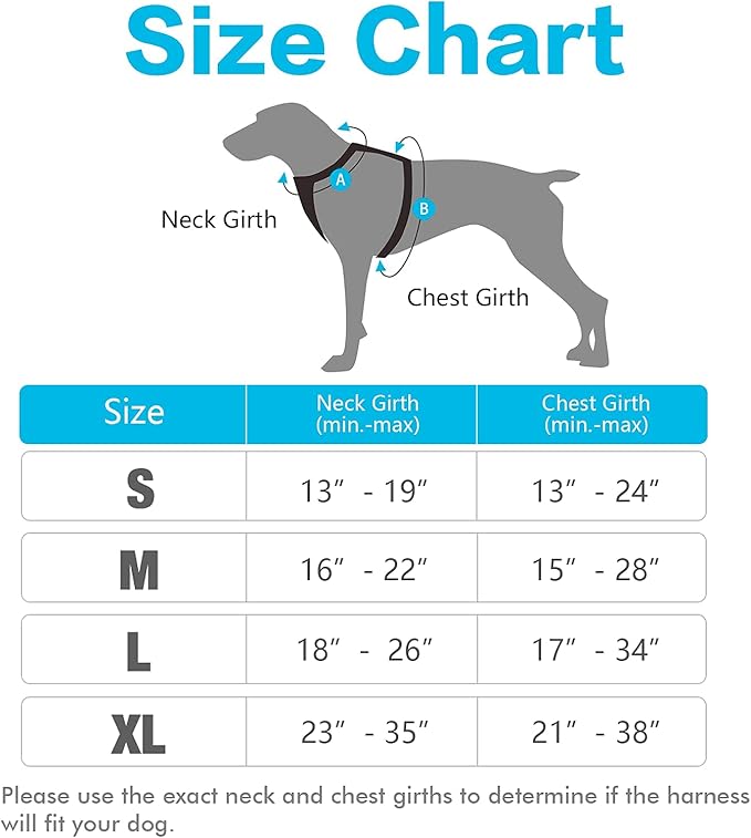 - Fully Adjustable - This adjustable harness features 4 easy adjusting straps around the body. You can use its 2 neck straps and 2 chest straps to create a perfect fit for your dog with some room of growth. No worries about slipping out or choking