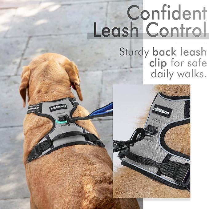 rabbitgoo Dog Harness, No-Pull Pet Harness with 2 Leash Clips, Adjustable Soft Padded Dog Vest, Reflective No-Choke Pet Oxford Vest with Easy Control Handle for Large Dogs, Grey, XL