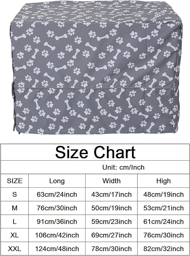 Dog Crate Cover for Wire Crates, Heavy Nylon Waterproof, Fits Most 48" inch Dog Crates, Easy to Put On, Take Off, and Adjust - Cover only - GrayPaw - M