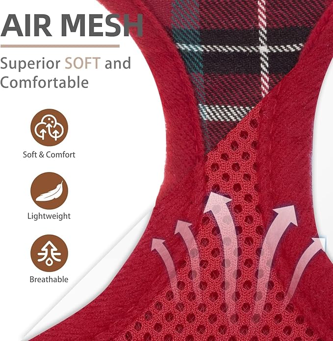 - DIFFERENT DESIGN: The harness is adopted with a plaid pattern which is designed by our internal brand team, so it's unique and very different from other normal harnesses. This plaid pattern looks both classic and stylish and is never out of date. It's great for everyday walking or going to a holiday party. It makes your furry friend look so lively and cute
