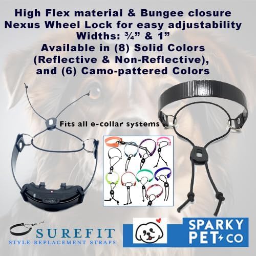 - ECOLLAR REPLACEMENT STRAP: Spring into the season by updating your dog's e-collar receiver strap! This 1" flexible surefit bungee collar by Sparky Pet Co is the perfect replacement for tattered, faded, and stained e-collar straps—designed for improved comfort, rigorous use, and superior receiver compatibility.