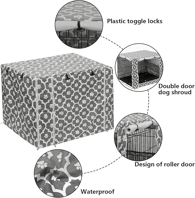 Pethiy Dog Crate Cover Durable Polyester Pet Kennel Cover Universal Fit for Wire Dog Crate - Fits Most 42 inch Dog Crates - Cover only-Gray Soles-42