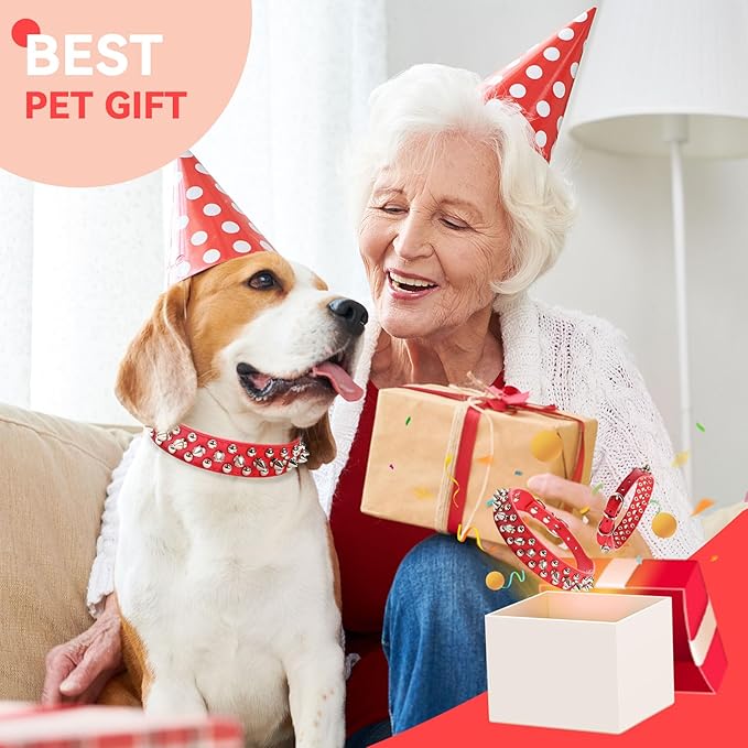PETCARE Spiked Dog Collar Red Soft Pu Leather Funny Mushrooms Rivet Spike Studded Puppy Collar Adjustable Outdoor Pet Dog Collar for Small Medium Large Dogs Cats Chihuahua Pug Pit Bull Dog Collars