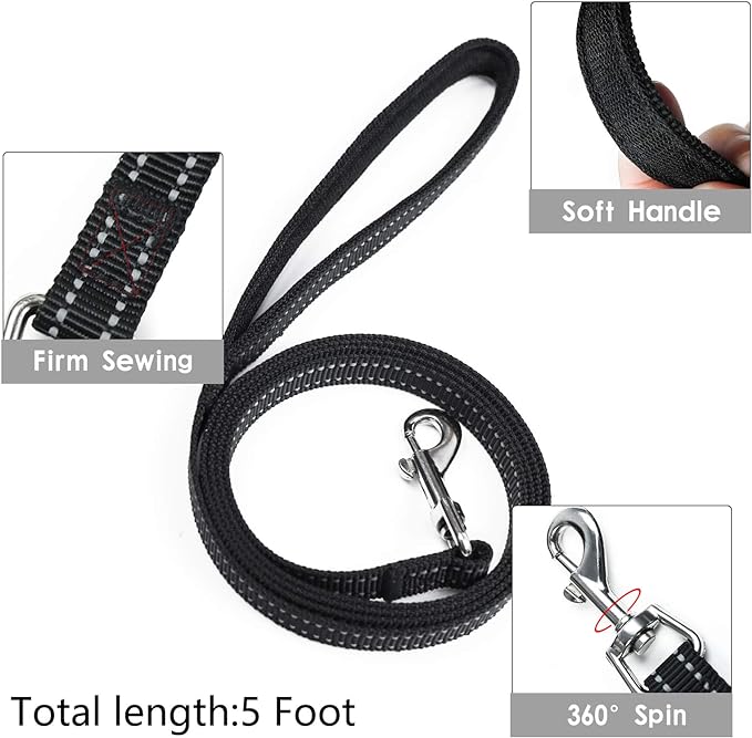 - 【Latest Reflective Design】The dog harness with 360-degree All-Over Reflective strip design, the leash is extended length (5 FT) with also have reflective effect, this harness and leash set makes your pet be visible at night, more easy control and safety