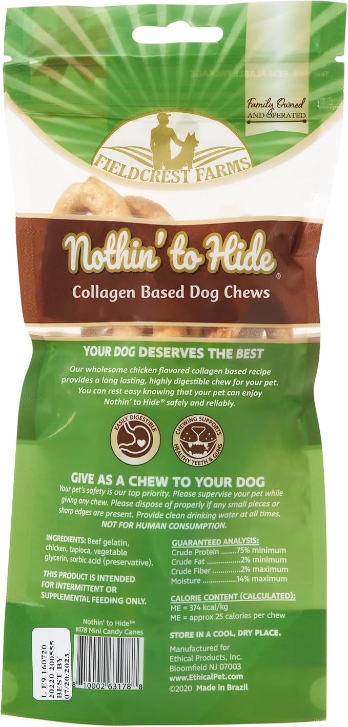 - Long-Lasting & Highly Digestible: Nothin' to Hide Mini Candy Cane chews are collagen-based and easily digestible, providing a safe and flavorful chewing experience that’s gentle on your dog’s stomach.