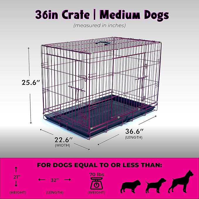 PET Expressions Luxury Colorful 36 Inch Foldable Dog Crate with 2 Doors | Free Training Ebook and Pet Calming Music | 3 Colors & 3