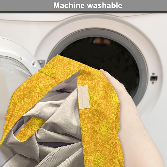 Lunarable Yellow Mandala Dog Crate Cover, Vibrant Colored Abstract Lotus Flowers Native Art Warm Sun Inspired, Easy to Use Pet Kennel Cover for Medium Large Dogs, 36 Inch, Yellow Orange