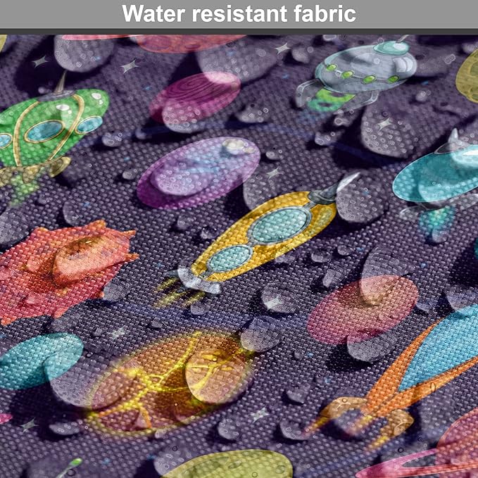 Lunarable Outer Space Dog Crate Cover, Cartoon Planets and Space Ships with Space Background Fun Science, Easy to Use Pet Kennel Cover for Medium Large Dogs, 36 Inch, Dark Blue